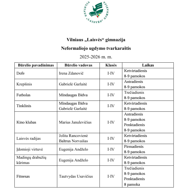 Siuvimo būrelio „Madingų drabužių kūrimas“ puslapis